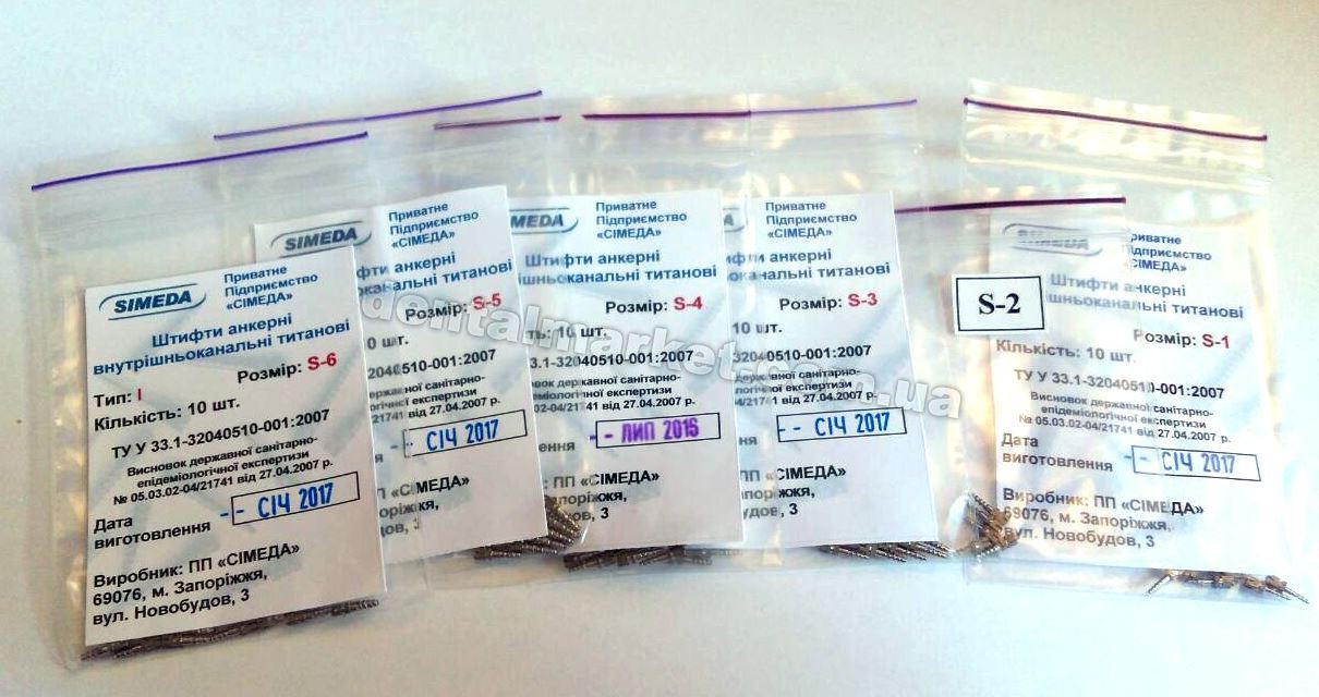 Штифти титанові анкерні Сімеда використовують в стоматології для зміцнення депульпованих зубів при їх прямих і непрямих реставраціях.
